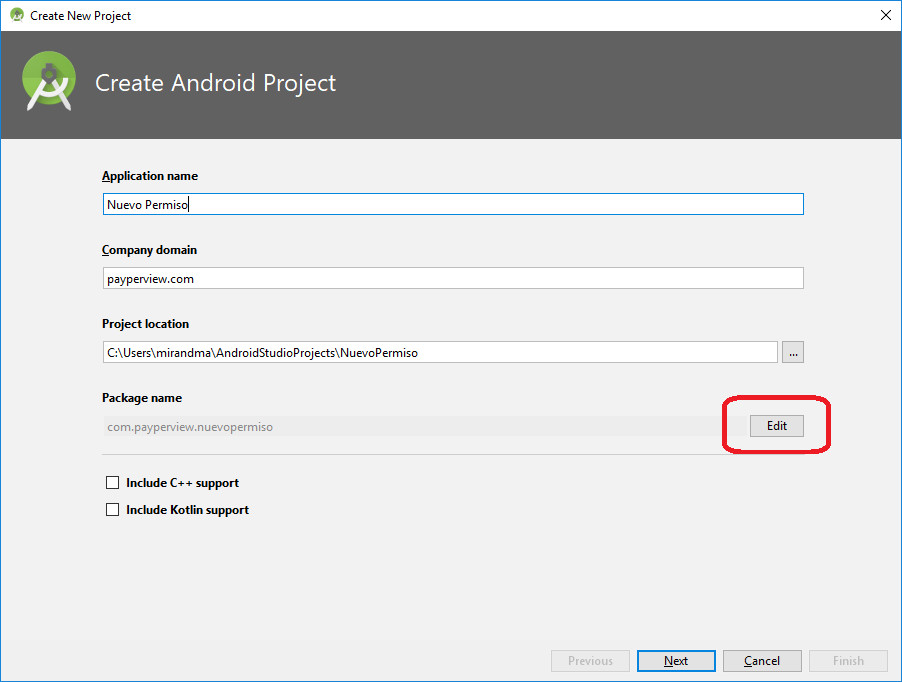 Para cambiar el nombre del paquete deben apretar el boton edit al lado del mismo para poder cambiarlo