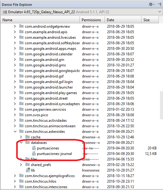 En este caso podemos observar como se comenzaron a almacenar nuestras puntuaciones y si vuelven al Device File Explorer tendran que tener generado los dos archivos que borramos previamente.