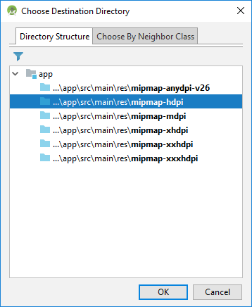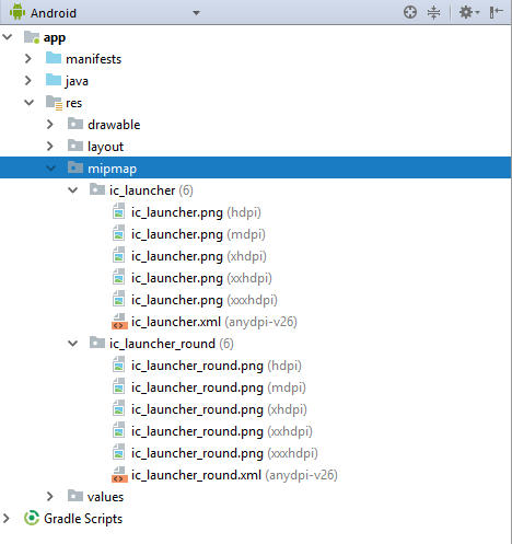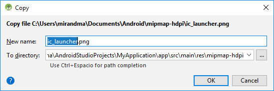 Nota: Cuando peguen los nuevos iconos deben hacerlo sobre el directorio mipmap y no sobre ic_launcher porque de lo contrario no les mostrara los directorios para diferenciarlos.
