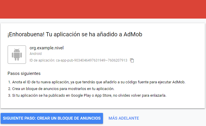 - No utilicen para las apps los dominios com.example, org.example o com.google porque no cargaran las propagandas