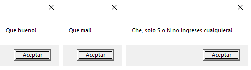 msgbox "Che, solo S o N no ingreses cualquiera!"