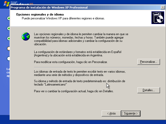 En la primera opcion elegiremos la zona para nuestros estandares de tiempo, moneda, separadores de listas, etc, en la segunda opcion seleccionaremos el teclado que se adecue mas al nuestro, una vez que hayan configurado todo presionen Siguiente para pasar a la siguiente pantalla