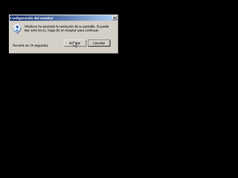 En esta pantalla seleccionaremos si queremos ir a un grupo de trabajo (local) o un dominio, para no complicarlo dejen como aparece en pantalla y presionen Siguiente, despues de esto continuara con la instalacion del Windows XP y una vez finalizado se reiniciara el equipo, puede suceder que una vez reiniciado nos pedira que ajustemos la pantalla como se ve a continuacion