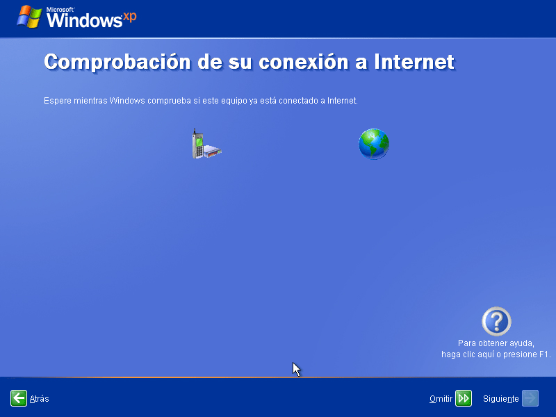 En este caso chequeara si tenemos conexion a Internet, les recomiendo Omitir, pasaremos a la siguiente pantalla