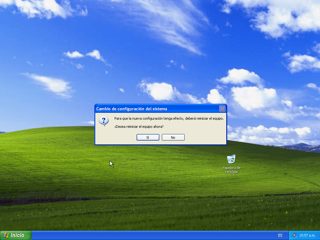 Con este cuadro finalmente podremos reiniciar el equipo, como siempre demasiadas notificaciones, presionen Si para reiniciar el equipo y una vez finalizado nos aparecera de la siguiente forma