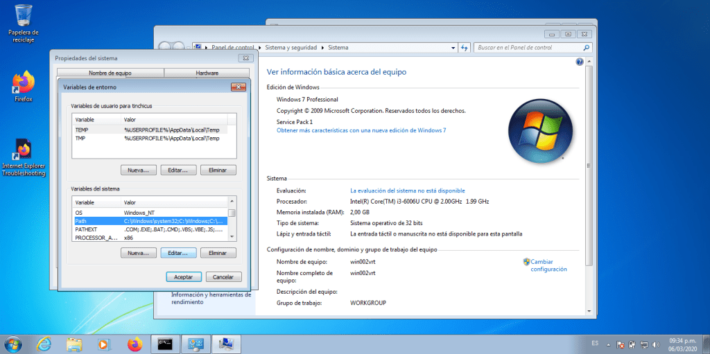 Se nos abrira otra nueva ventana y deben apretar el boton Variables de entorno, como se ve en la siguiente imagen