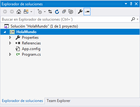 Este es el codigo que nos genero automaticamente, como pueden observar completamente vacio y tambien veamos como nos quedo la ventana del Explorador de soluciones