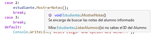 /// Mira <see cref="Estudiantes.ListarAlumnos()"/>si no sabes el ID del Alumno