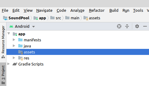 Si se dieron cuenta de un detalle es que cambiamos a la version de la API pero porque lo hacemos asi? En realidad lo hacemos para poder ver como se utiliza esta clase en una API superior a la version 21, cuando veamos este tema en nuestro juego Pong lo haremos con una API mas inferior, con esto aclarado pasemos a hacer unas modificaciones antes de centrarnos en nuestro codigo, primero haremos click con el boton derecho sobre la raiz de nuestra app, es decir donde dice app, seleccionaremos New -> Folder -> Assets Folder, nos aparecera la siguiente ventana