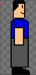 Esto es solamente una idea pero debera indicarnos que estamos mirando a la derecha, nuestro ultimo paso sera agregar el ultimo frame para hacer que mire a la izquierda, para ello debemos agregar otro frame mas, luego le seleccionamos todo el ultimo frame y presionamos Ctrl+C, ahora seleccionamos a la imagen como pincel, luego la herramienta de lapiz para finalmente seleccionar a la herramienta Mirror