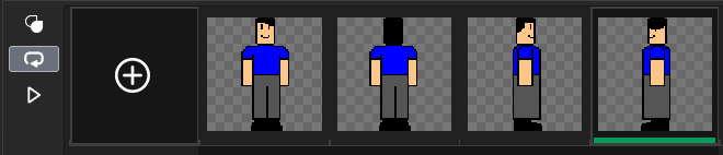 Con esto realizado debemos hacer el mismo procedimiento, volvemos a agregar un frame con el boton de mas, les recomiendo pegar la imagen del primer frame para poder modificarlo de manera tal que ahora debe quedar mirando hacia la derecha nuestra, como se ve a continuacion