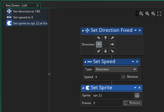 El siguiente paso sera agregar un nuevo evento, el cual sera Key Up -> Left, este se encargara de detectar cuando soltemos la tecla, para este caso volvemos a agregar la accion de Set Direction Fixed pero no seleccionaremos ninguna direccion y luego agregaremos Set Speed dejaremos a Type como Direction y en Speed con el valor de 0, esto que hicimos recien debemos repetirlo por cada una de las tres direcciones restantes, vamos a hacer uno de los casos mediante el siguiente video