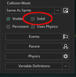 El siguiente paso sera crear un objeto para este sprite, de nuevo buscaremos la carpeta Objects en Assets Browser, sobre ella haremos click con el boton derecho y seleccionaremos Create -> Object, a este nuevo objeto lo llamaremos obj_Prd y le agregaremos el sprite, hasta ahi como siempre pero esta vez haremos una modificacion mas y le diremos que sea solido, para ello debemos tildar la siguiente opcion