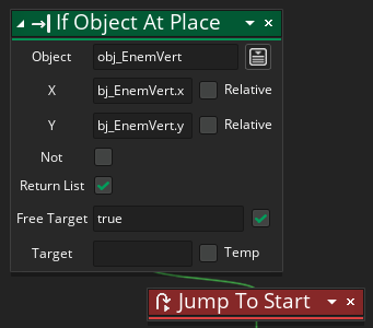 En Object debemos asignarle el objeto en Cuestion, obj_EnemVert, en el eje X e Y vamos a usar los ejes X e Y de obj_EnemVert, para ello usaremos las siguientes variables en sus respectivos ejes: