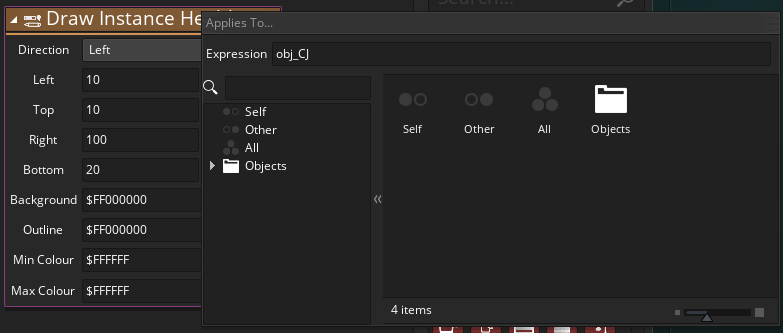 En esta nueva ventana seleccionen Objects y al objeto obj_Cj, esto hara que nuestra barra este relacionada con el jugador y se actualizara cada vez que recibamos un impacto, vamos a compilarlo y probarlo mediante el siguiente video