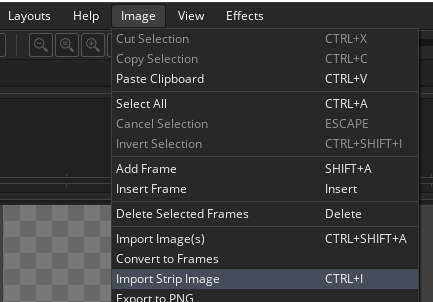 Descargado el archivo, extraigan los archivos y recuerden donde los guardaron, si presionaron el boton en este momento estaran en el editor pero ahora iremos a la opcion Image y luego a Import strip image como se ve en la siguiente imagen