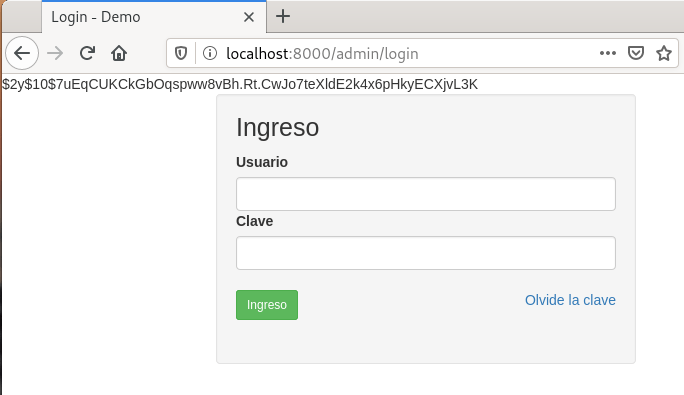 Esta nos mostrara el valor hash de la «contraseña» de nuestro usuario, esto debemos hacerlo asi para obtener este valor antes de ingresar a nuestro usuario, por el momento la funcion nos quedara asi: