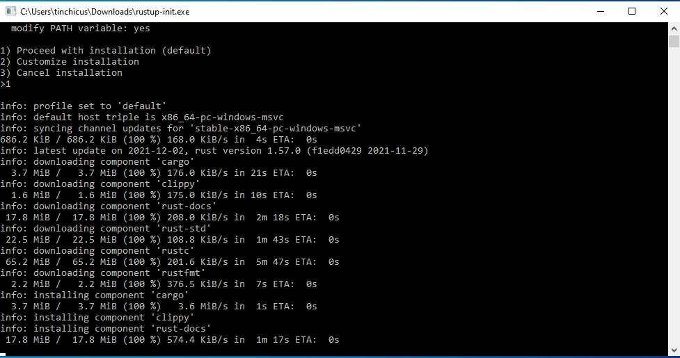 C:\Users\tinchicus>rustc --version