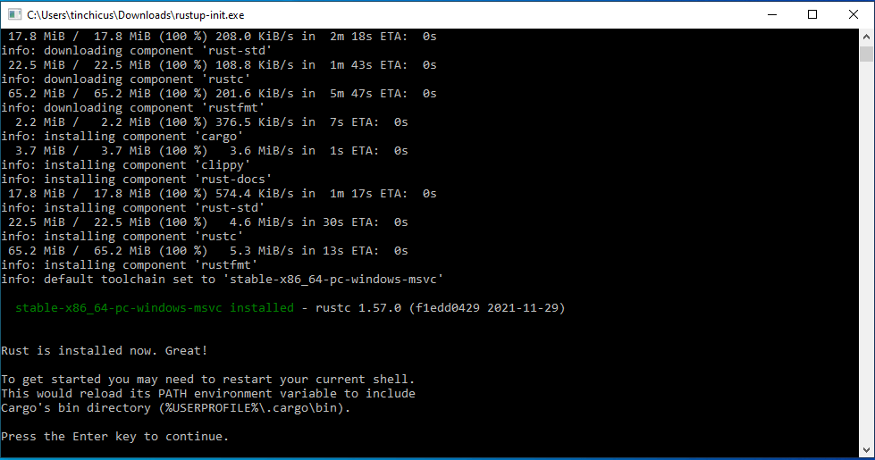 Listo ya tenemos rust instalado en nuestro equipo, en el proximo post veremos como es la estructura tan particular de los proyectos de Rust.