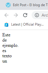 En este ejemplo simple donde primero definiremos una funcion, dentro del bloque de esta funcion definiremos una variable llamada texto con un mensaje, lo siguiente sera definir un array mediante el metodo split, del cual hablamos en este post, al cual aplicaremos a la variable anteriormente definida, el siguiente paso sera utilizar un bucle for para pasar por todos los elementos del array pero a este le aplicaremos el metodo sort, en el bloque del bucle escribiremos el elemento en el cuerpo del html, por ultimo en el body del html llamaremos a la funcion anteriormente comentado, veamos como es su salida