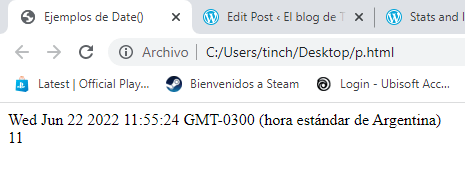 Como pueden ver nos devolvio ambos valores, observen como es la fecha completa que obtenermos al crear un objeto de tipo Date y en el segundo caso nos devolvio unicamente el valor que representa a la hora de la fecha.