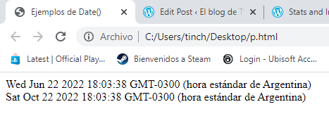 Como pueden ver nos devolvio ambos valores, observen como es la fecha completa que obtenermos al crear un objeto de tipo Date y en el segundo caso nos devolvio la nueva fecha modificada.