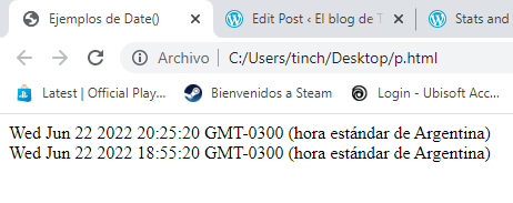 Como pueden ver nos devolvio ambos valores, observen como es la fecha completa que obtenemos al crear un objeto de tipo Date y en el segundo caso nos devolvio las modificaciones realizadas donde le restamos 90 minutos a la fecha antes mostrada.