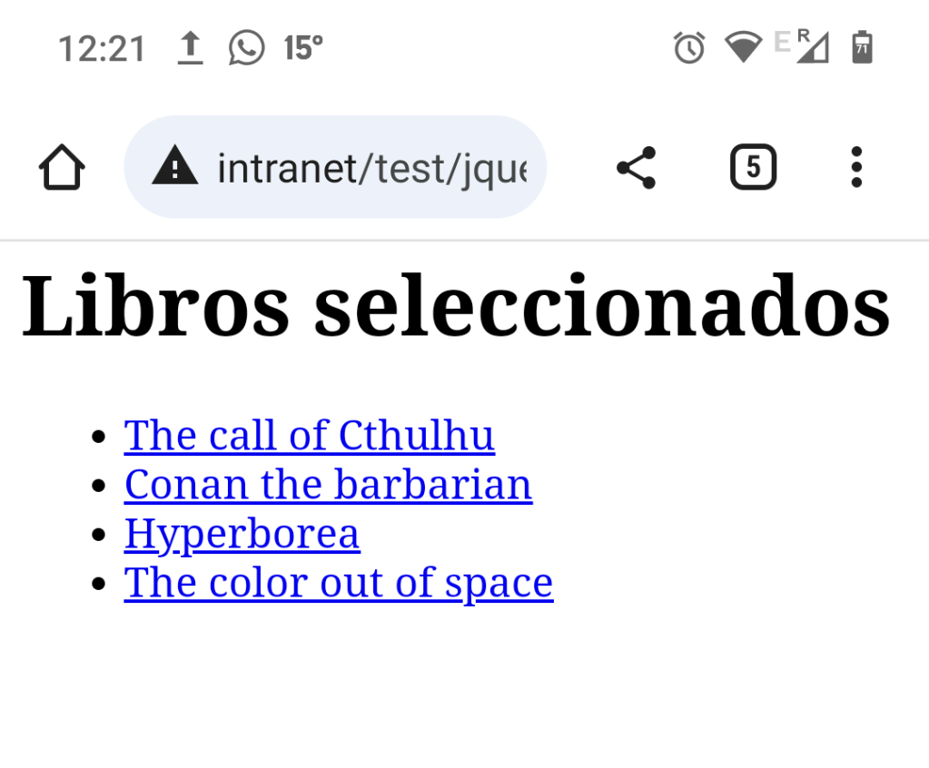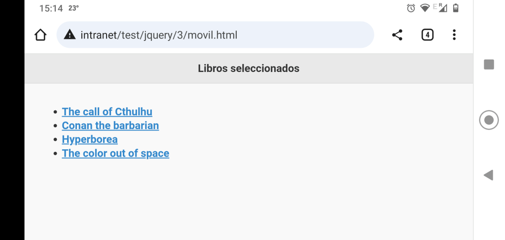 En este caso no solo lo cambiamos de orden sino que en lugar de ir a un archivo le pasamos cada uno de los id para cada libro, despues el resto sigue de la misma forma pero antes de probarlo vamos a hacer la ultima modificacion, para ello debemos crear junto al archivo movil.html uno nuevo llamado estilo.css y le agregaremos el siguiente codigo: