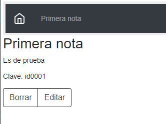 Resalte las modificaciones que se realizaron, noten que agregamos unos div para poder controlar la forma de mostrar la informacion de la nota, en el caso de la nota solamente lo envolvimos entre div, despues el condicional donde estaban los links agregamos dos div para hacer lo mismo con los datos pero ahora transformamos estos links en botones, para ello le aplicamos las clases y le asignamos el rol de boton, si lo prueban ahora nuestras notas se veran de la siguiente manera: