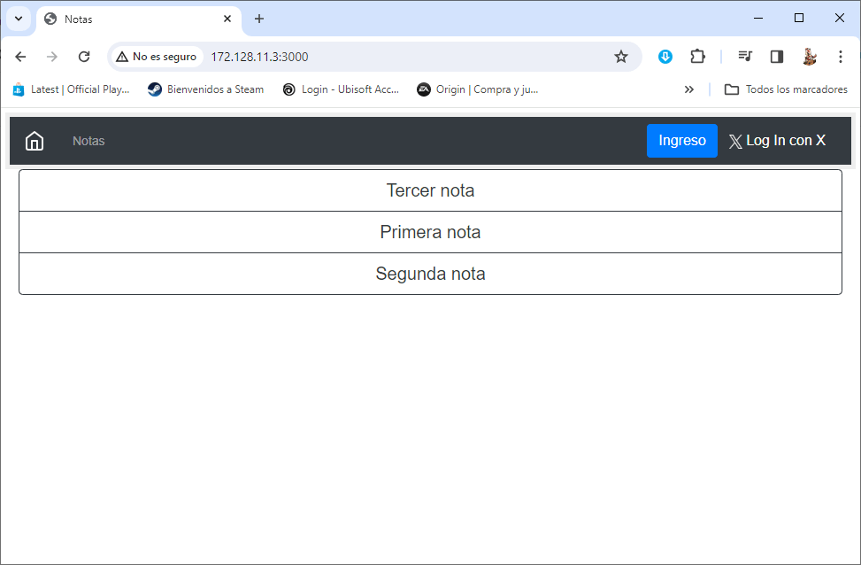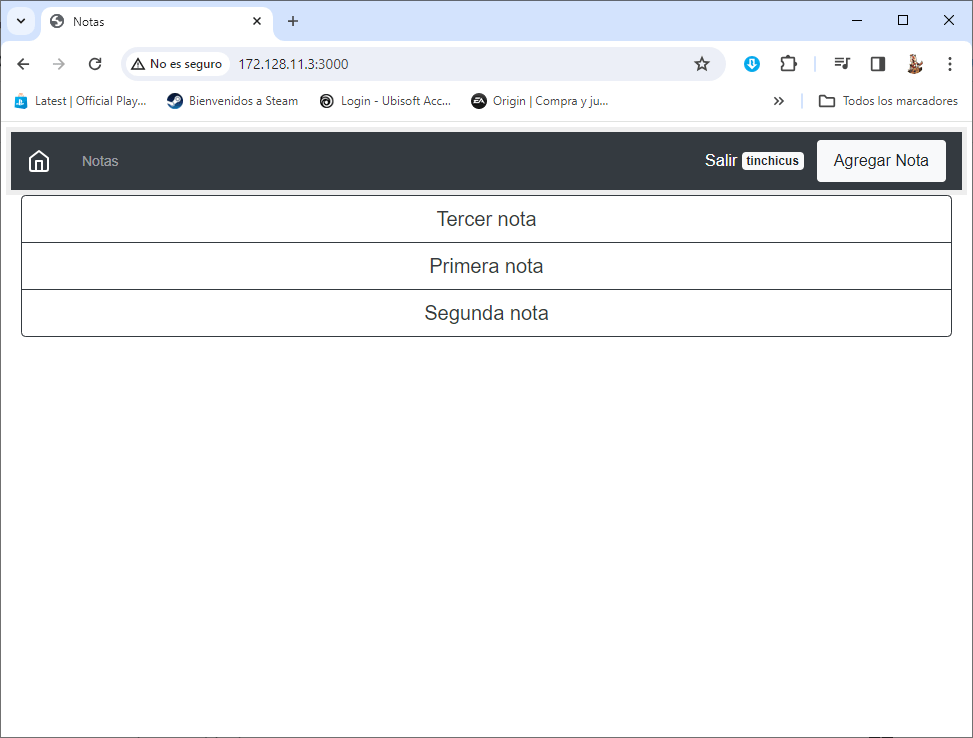 Por el momento no se preocupen por la notificacion de desechado porque hasta el momento de la publicacion de este post sigue funcionando pero no quita que en un futuro si deje de funcionar, pero con todo esto ya tenemos nuestro entorno recreado solo nos resta probarlo, si abren la aplicacion notas se vera de la siguiente forma