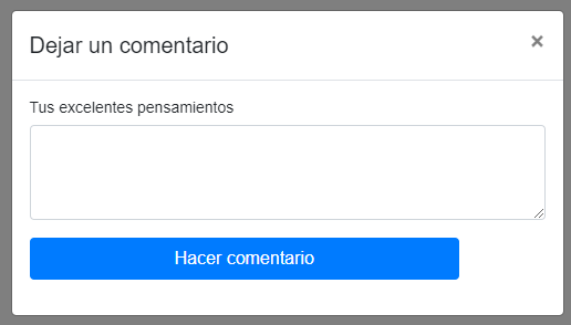 Esta sera la ventana que usaremos para ingresar el comentario, para ello hace una doble verificacion, primero que exista la nota y a su vez estemos «logueados» con un usuario de lo contrario no aparecera, en este tendremos una serie de div para contener los distintos elementos y algunos tendran un rol asignado como header o document, tendremos uno para el boton de cerrar sino queremos comentar y luego el cuerpo o body de la ventana donde estara todo lo necesario para poder ingresar la informacion, en este caso usaremos un form para subir los datos y al comienzo tendremos cuatro datos de tipo hidden donde estaran varios datos que no deben ser ingresados por el usuario como son el namespace, room, de quien es, y la clave de la nota, despues tendremos un area de texto donde escribiremos nuestro comentario y el boton para subirlo, al momento de agregar nuestro comentario se vera de la siguiente manera: