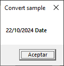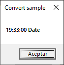 The format will depend of the locale of your computer, this is in my case. The last example apply another cdate but this time with an hour and we store it on value_2. We repeat the statement of msgbox to show this new value. Let’s take a look to its output: