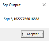 text = "Sqr: " & sqr(number)