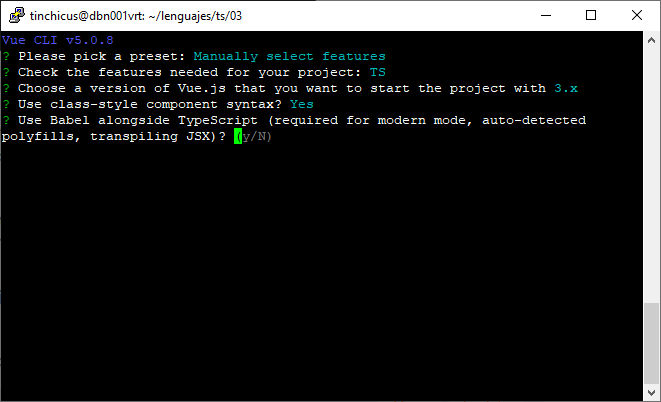 Esta opcion es para habilitar a babel para nuestro codigo, en esta ocasion le pasaremos N para que no lo habilite. Veamos como es la siguiente ventana