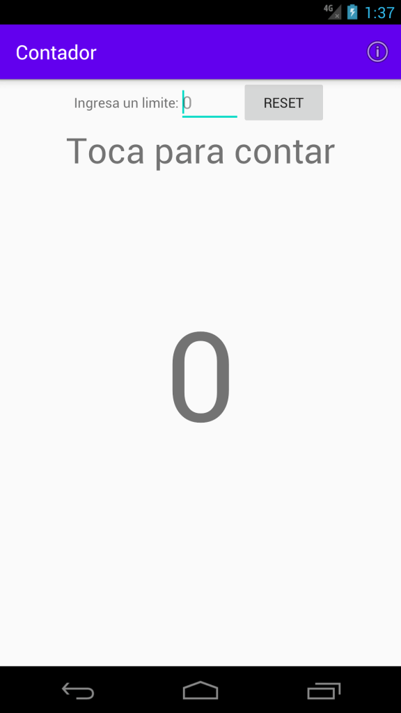 Esta es una aplicacion simple para contar cuando necesitas repetirla una X cantidad de veces, esto se puede hacer simplemente tocando la pantalla y veras el incremento en pantalla.